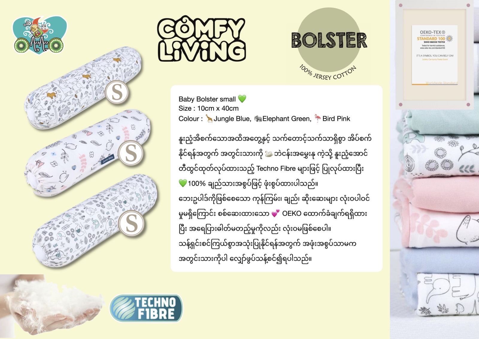 OAAO Cotton Baby Bolster Small 10x40cm